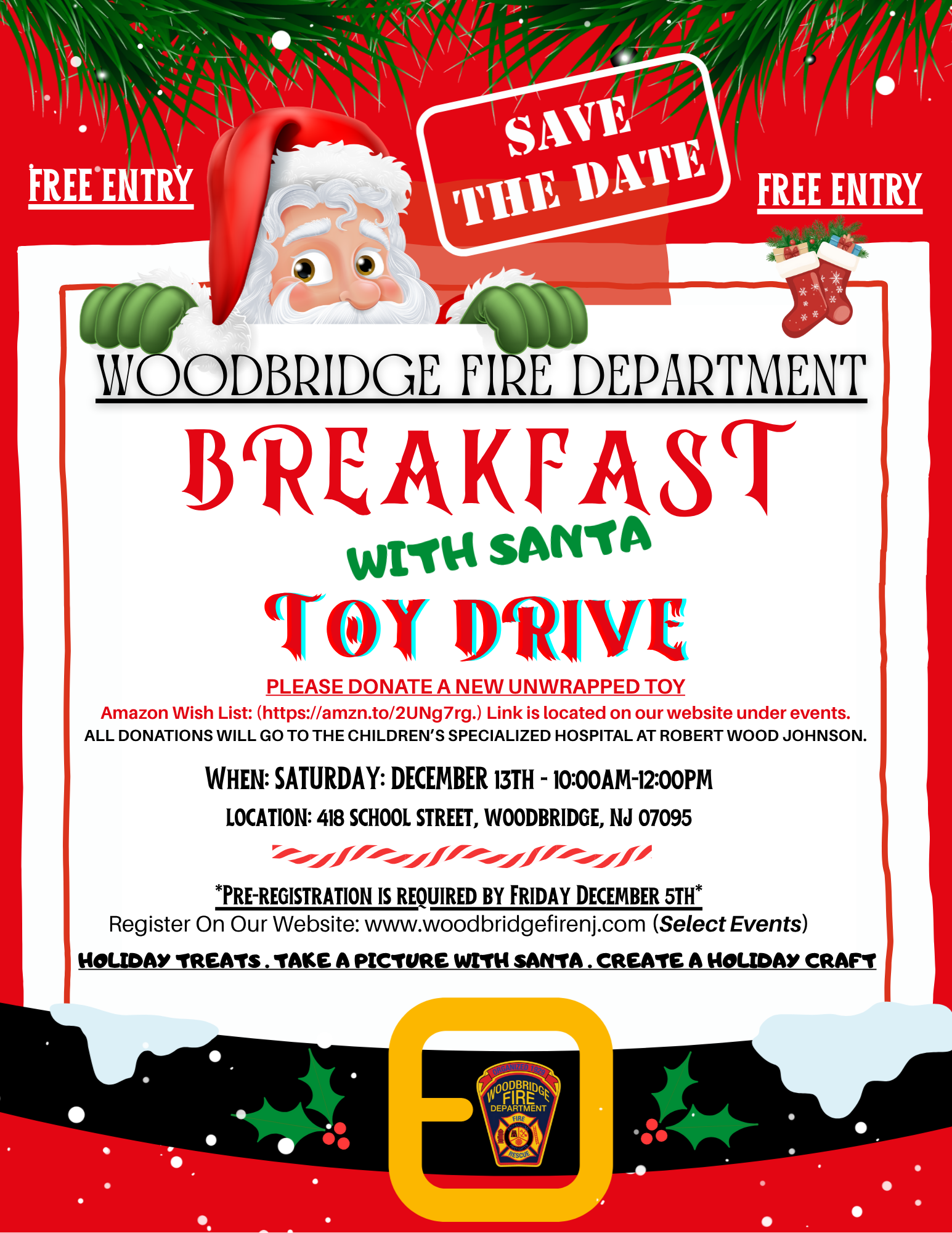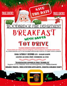 “Breakfast with Santa” Toy Drive Posted on December 13, 2025 by chuckm When December 13, 2025 10:00 am - 12:00 pm Add To Calendar Download ICS Google Calendar iCalendar Office 365 Outlook Live Bookings Bookings closed Where Woodbridge Fire Dept To donate an unwrapped toy, Click the link to our Children’s Wishlist on Amazon in the “More Info” section. Bookings This event is fully booked.